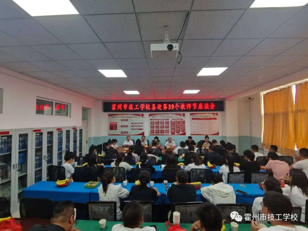 金秋是收获的季节,是催人奋进的季节,在2023年9月8日这个美好的日子里,霍州市技工学校全体职工在厚德楼三层为教师们举办座谈会。向在教育教学一线辛勤耕耘的全体老师及广大教职工致以节日的祝贺和良好的祝愿。出席本次活动的还有霍州市人力资源和社会保障局党组副书记刘建平和党组成员赵建玲。