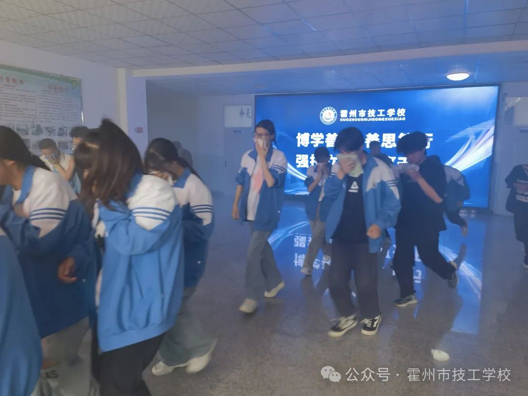 2024年6月13日,霍州市技工学校组织全体学生开展了消防安全演练活动。 为提高全校师生的应急疏散防灾能力,进一步深化全校师生的防灾减灾意识,培养学生的自我防护能力,6月13日下午,霍州市技工学校组织全体师生开展了消防安全演练活动。 演练开始前,各班主任及教官进行了消防安全教育,并指导学生掌握应急避险、逃生、疏散演练时的方法和注意的问题。每个楼层安排了消防演习烟雾弹,学校广播连续响起急疏散信号的同时点燃烟雾弹,学生在听到急疏散信号之后,有秩序的从教室中跑出,用湿毛巾捂住嘴巴,按照一楼、三楼(同时疏散)二楼的顺序逃离教室,由各班班主任根据教学楼楼道管理的有关规定组织学生疏散,在楼梯口、转弯口等指挥学生安全撤离。到达指定集合区域后,教官、班主任清查人数,逐级上报。同时在一楼大厅安排医务室人员,准好备好纱布、盐水、胶带、碘酒等。 本次消防安全演练活动,旨在提高学校师生防灾抗灾自救能力,熟悉逃生路线,确保在学校发生紧急灾害时,能够做到快速、高效、有序地进行处理,提高处置突发事件的应急能力,保护好全体师生的生命财产安全,维护学校教育教学秩序。通过消防演练,让学生学习安全防护知识,达到有事不慌、积极应对、自我保护的目的和提高应对突发事件的应变能力。 编辑 | 蒲雨妍 校对 | 李红峰 校审 | 白若冰