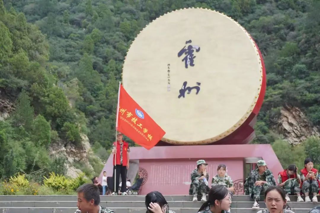 中午12点,训练暂告一段落,新生们有序前往就餐点。简单休整1小时后,下午1点30分,全员开启七里峪锣鼓景区徒步之旅。大家相互鼓励、并肩前行,40分钟后顺利抵达目的地。途中偶遇霍州“梦阳正能量”直播,新生们热情挥手致意,成为了镜头里一道青春靓丽的风景线,也让更多人看到了当代学子的活力。