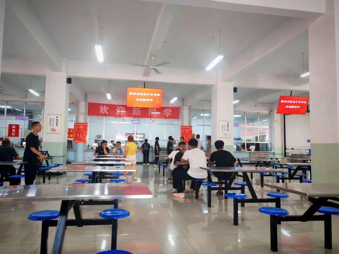 收拾完宿舍,不少新生和家长来到学校餐厅。在就餐卡办理窗口,工作人员熟练地为新生录入信息、开通人脸识别功能,还耐心介绍:“餐厅内有家常炒菜还有各类特色小吃,充值可以在一楼机器上操作,也能线上充”。